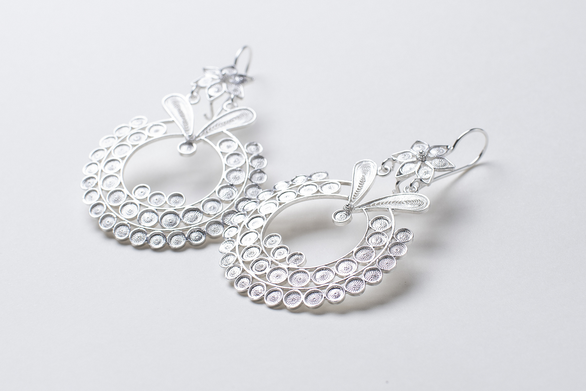 Os brincos foram confeccionados na cidade de Gondomar (Portugal), capital da joalheria de Portugal.