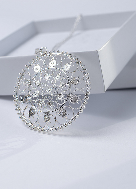 A espessura do fio de prata utilizado no trabalho de filigrana não ultrapassa 0,22 mm.