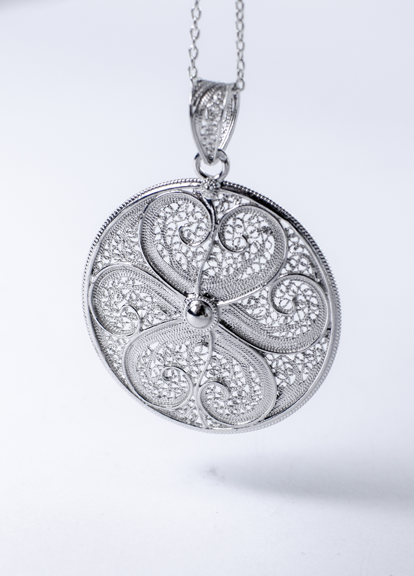 A espessura do fio de prata utilizado no trabalho de filigrana não ultrapassa 0,22 mm.