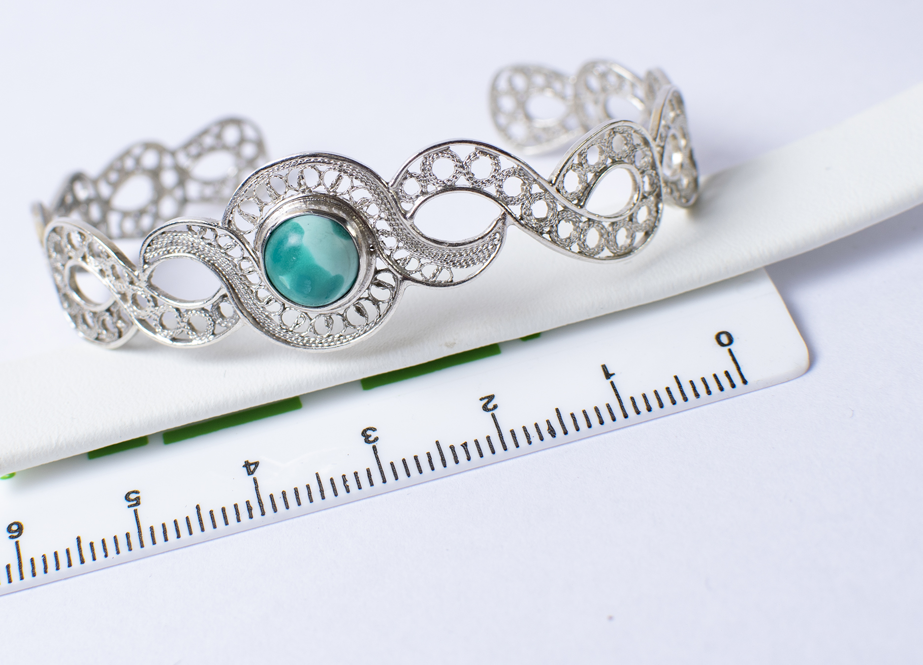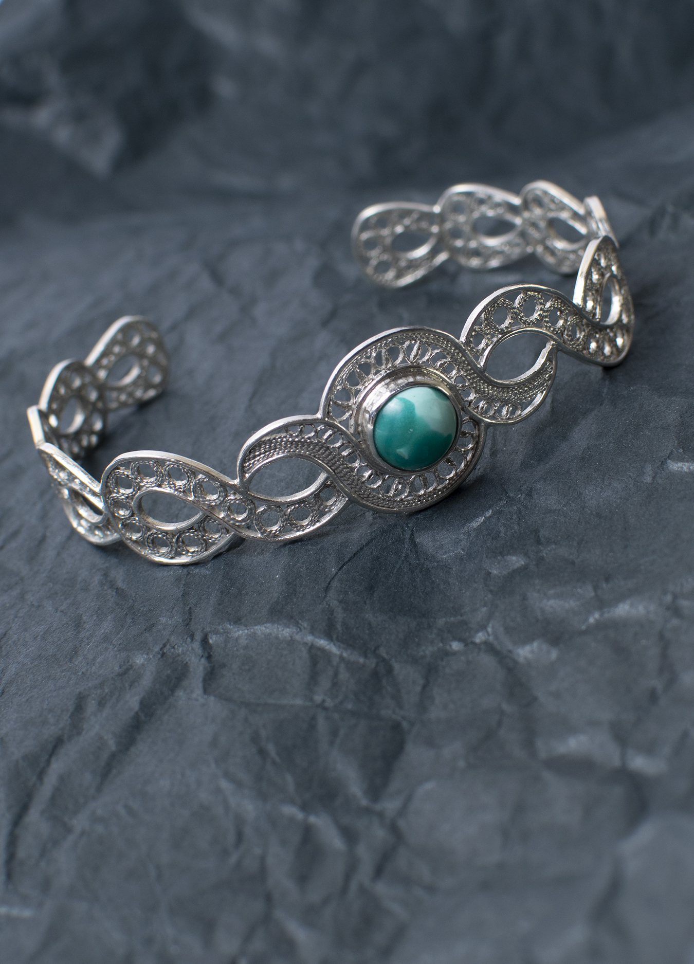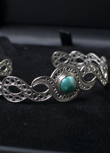 Pulseira com turquesa. Feito à mão. Filigrana portuguesa. Prata.